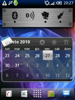 a destra Calendario, bluetooth files trasfert..